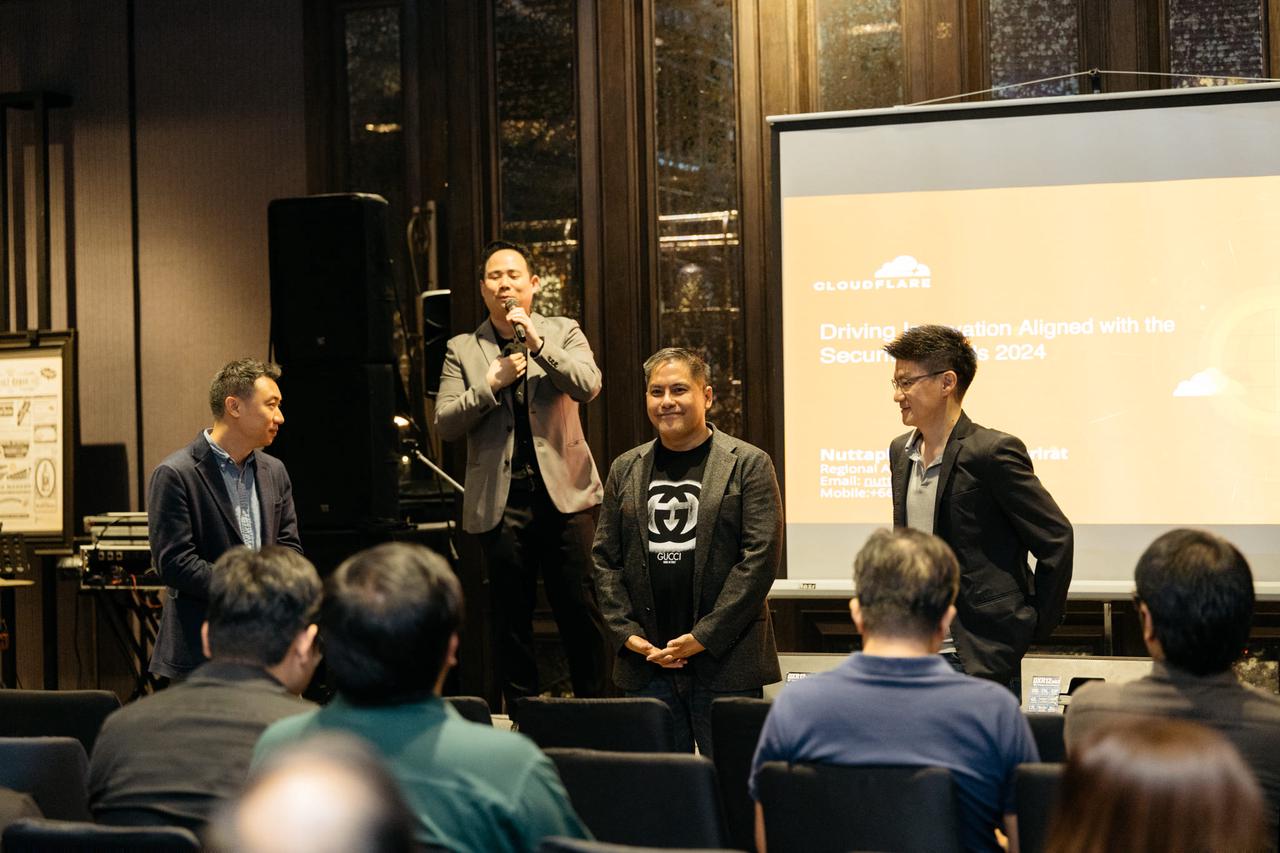 อีกทั้งได้รับเกียรติจาก Cloudflare ผู้ให้บริการ CDN หรือ Content Delivery Network ที่มีเครือข่ายครอบคลุมทั่วโลก โดย คุณณัฐพันธ์ เรืองรังษีรัตน์ (Regional Account Executive, Cloudflare) ที่มาแบ่งปันความรู้ในหัวข้อ "Cloudflare : Driving Cloudflare Innovation by Aligning with theSecurity Trends 2024" นวัตกรรม Cloudflare ให้สอดคล้องกับแนวโน้มความปลอดภัยปี 2024